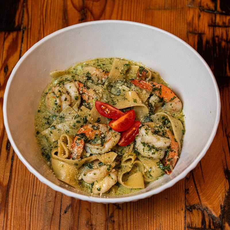 Pesto Shrimp Papardelle Bowl